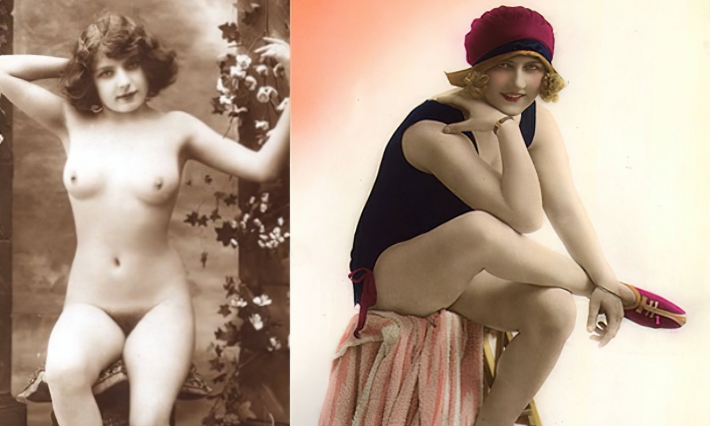 Женщина в соку пошла в лес за грибами. Заготовки на зиму ее мало интересовали и найдя в лесу одинокий дом, решила там раздеться, закинув лукошко по дальше. Девушка снимает рубашку с нижним бельем, обнажая симпатичную киску с сиськами, интересная получилась ретро эротика.