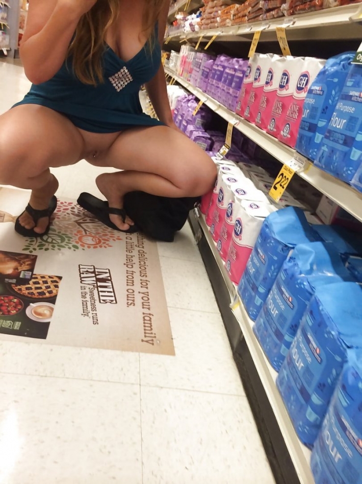 Сучка отправилась в супермаркет за покупками, взяв тележку, она отправилась выбирать товар на многочисленных полках. На ней одеты колготы, короткая юбка, пиджачок и просвечивающаяся блузка, каждый раз когда телка будет наклоняться, под юбкой будет хорош видно ее киску с попкой.