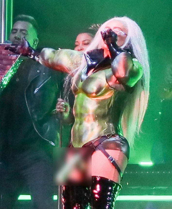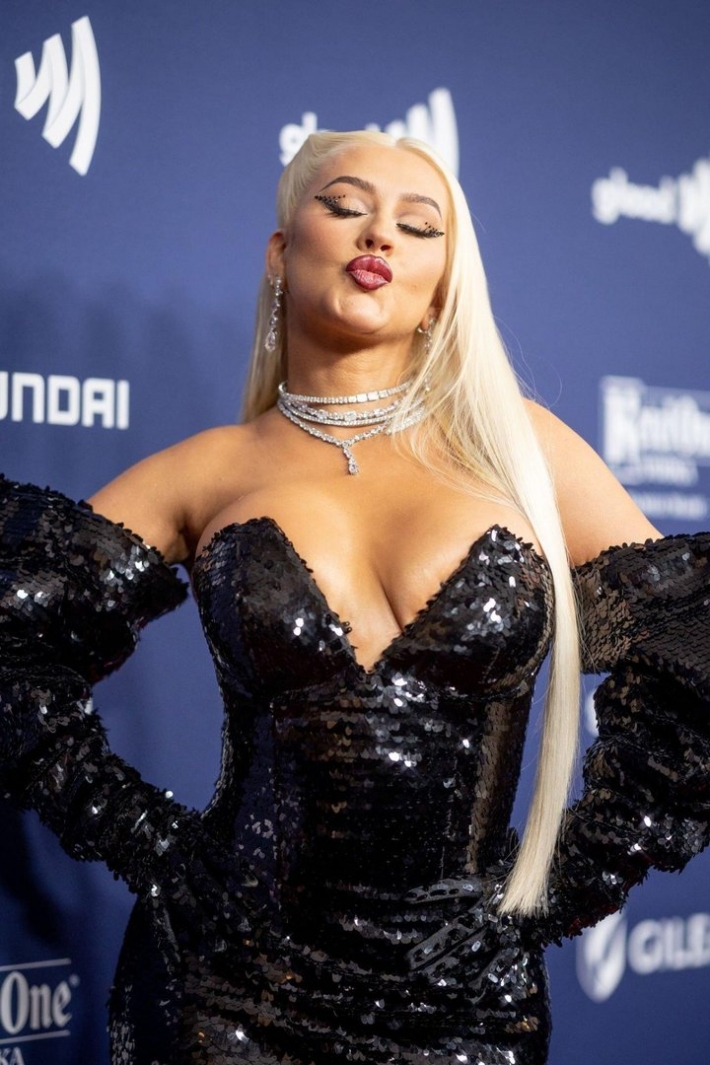 Christina Aguilera так и не довелось сниматься голой в кино картинах, но на счастье это она делает, причем с большим довольствием на своих концертах или разных журналов. За карьеру у Кристины скопилось очень много фотографий, на которых можно насладиться ее откровенными выступлениями и одеваемыми нарядами. Не закомплексованная певица совсем не прочь шокировать своего постоянного зрителя, получая в свою копилку все больше поклонников. Посмотреть же на ее аппетитные сиськи точно захочет любой.